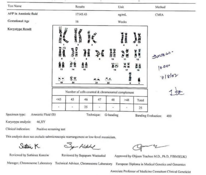 1月8日、羊水検査(羊水穿刺)の結果が判明し、異常なしとの確認が取れました。