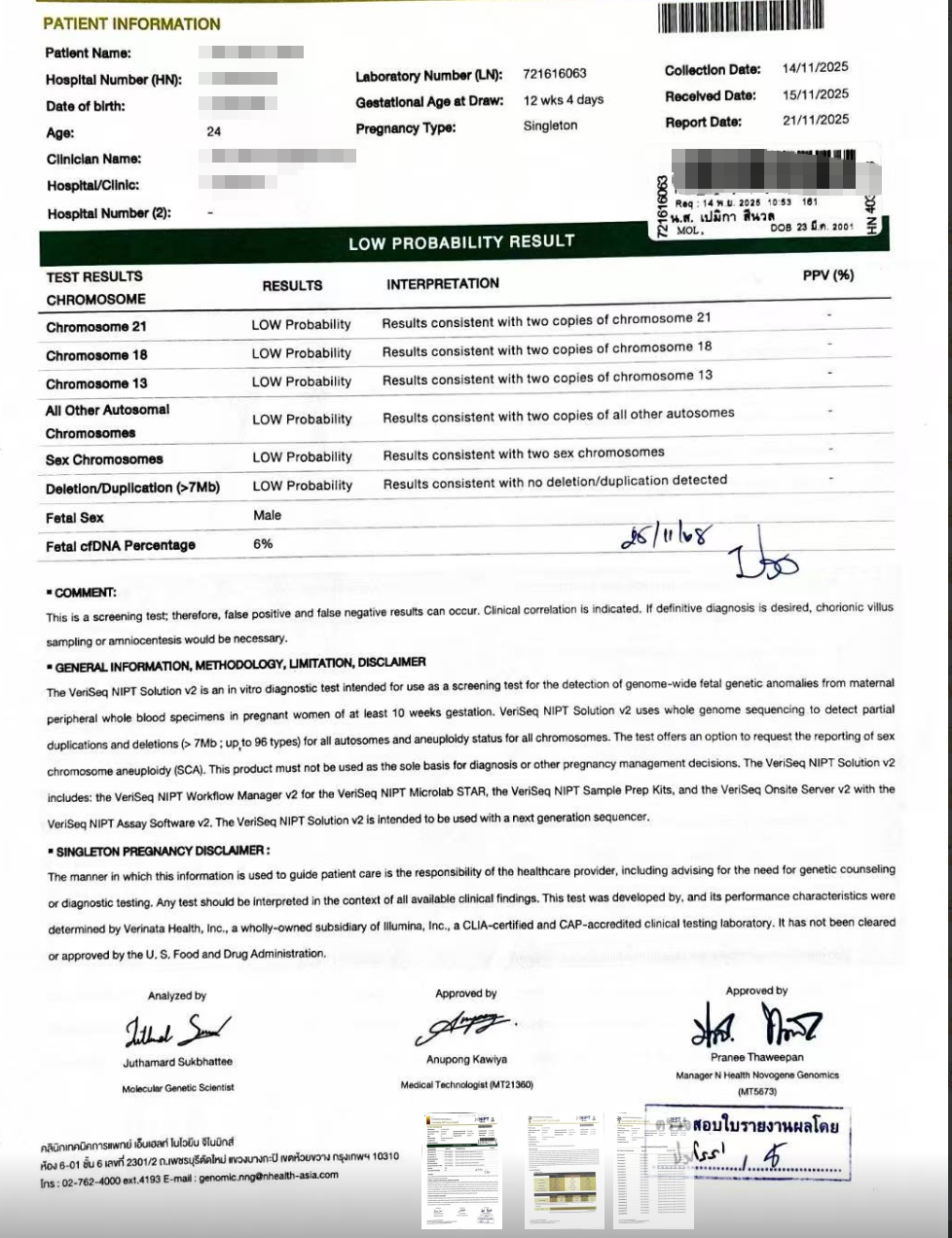 NIPT(無侵襲的出生前検査)の結果はすべて正常でした💗